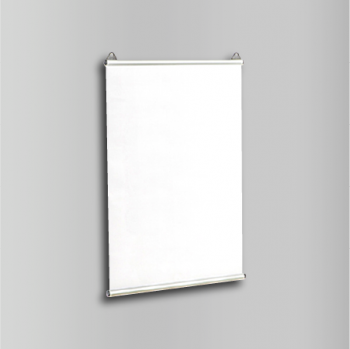 Aluminium profile with ballasting bar + print on numerous sizes. Fire retardant medium available.