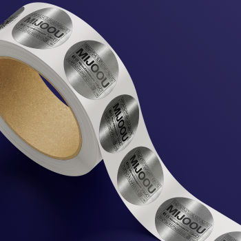 Budget stickers with specific formats on white or clear vinyle, plastic, vellum paper or holographic substrate with slits at the back.