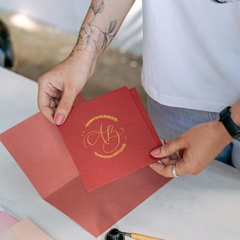 Pour une personnnalisation unique de vos papiers de faire-parts, optez pour la fabrication d'une pince à sec pour personnaliser vos faire-parts ou enveloppes avec un embossage unique. La pince à sec est gravée en fonction d'une épaisseur donnée de papier (léger, moyen ou épais). Elle est ensuite utilisable à la main sur tous vos supports que vous personnalisez manuellement à la maison devant une bonne série télévisée par exemple. Vous obtiendrez de magnifiques gaufrages (pas au-delà de 4cm du bord de la feuille) pour un effet luxueux garanti. La pince se conserve indéfiniement ensuite.