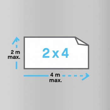 Les formats présentés sont des exemples de prix. Si vous avez une urgence, merci de sélectionner le format dit "supérieur approchant en m2" pour une commande immédiate et précisez le format final souhaité dans le bon de commande. Ex : pour un mur 3m de haut x 10m de large = 30m2, sélectionnez le format 5x7m = 35m2. Si vous avez du délai, vous pouvez nous envoyer une demande de devis sur le support sélectionné parmi ceux présentés avec le format exact de la surface à imprimer (en H x L - 24h à 48h de délai de réponse environ + temps de production + livraison en option).