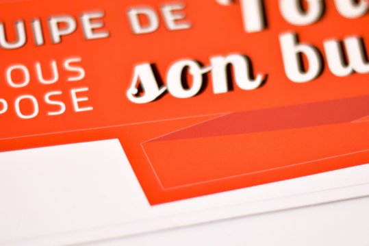 Nous pouvons faire une découpe à plat de tout support papier, adhésif papier ou carton jusqu'à quelques millimètres d'épaisseur à l'aide d'une lame : jeux de cartes, flyers avec coins arondis, faire-parts avec forme sur mesure, couverture de brochure, cartes de remerciement ou correspondance, cartes de visite... le prix dépend alors du nombre d'imprimés que nous pouvons poser sur chaque planche d'impression x le temps de découpe par feuille. Certains tarifs existent en option sur le site. Sinon n'hésitez pas de nous faire une demande de devis. Cette technique est limitée à quelques dizaines / centaines d'exemplaires (voire milliers sur de petits formats) la découpe étant faite pièce par pièce. Sinon opter pour la découpe par moule.