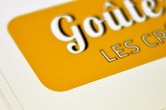 Grandes séries : ici c'est l'utilisation de formes de découpe en métal qui est proposée. Pour les petites séries, cliquez ici. Ces formes sont onéreuses (plusieurs centaines d'euros à fabriquer) et ne sont pas éternelles : les lames finissent par s'user et il faut refabriquer une nouvelle forme identique. Si vous utilisez une forme de découpe en stock chez nous, les prix sont à peu près les mêmes pour des formes simples et comprennent le calage, le temps de découpe et l'amortissement des formes.