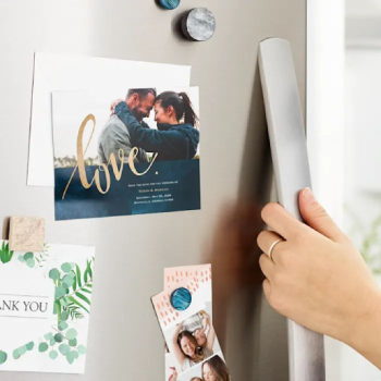 Magnet printing on white, neon, holographic, gold or silver papers with glossy or soft touch finish. Very long lasting thanks to plastic encapsulation.