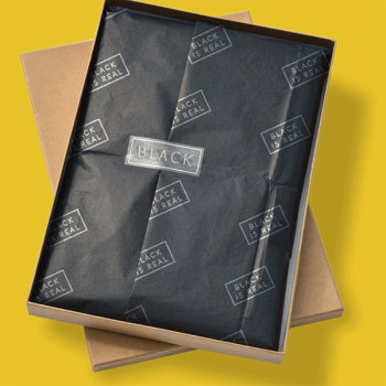 White or coloured tissue silk paper printing with 1 colour (black, Pantone, gold, silver, white or full print) on 50x75cm sheets with a very light weight of 17gsm/sqm.