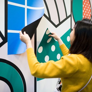 Very large format wallpaper printing with very long lasting inks on several media such as budget paper, neon papers, blueback paper or different kind of wallpapers. Printed on several segments.