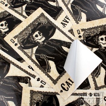 Artistic sticker printing by unit, on sheets with several visuals, on specific adhesive (holographic, neon...) with standard or custom shape.