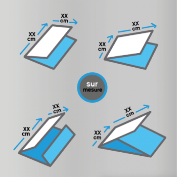 Options : multi-designs, creases (not always possible), Drop Gloss glossy ink, textured ink...