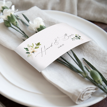 Band napkin printing delivered flat (to be glued or stapled) on the paper of your choice and with custom size from 25 units only.