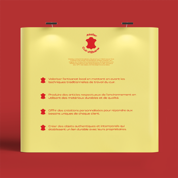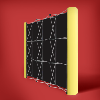 Easy to pop display with travel suitcase up to 370cm wide. Straight or curved. 3 printing deadlines. LED lamps optionnal.