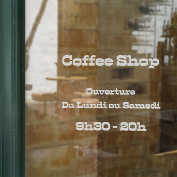 sur des vitrines de magasin ou de commerce pour décorer, donner des informations utiles (logo, poussez la porte, horaires, site internet etc...) dans votre couleur et votre charte de police. En élément de décoration de vitrine, les créations sont multiples et surprenantes.
