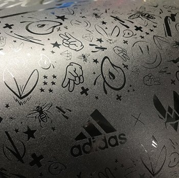 Un rendu unique avec une impression de vinyle adhésif brillant, métallique ou fluorescent (liste des coloris dans les formulaires de commande standard) avec des encres mates noires, couleur et/ou blanche & résistantes en extérieur.
