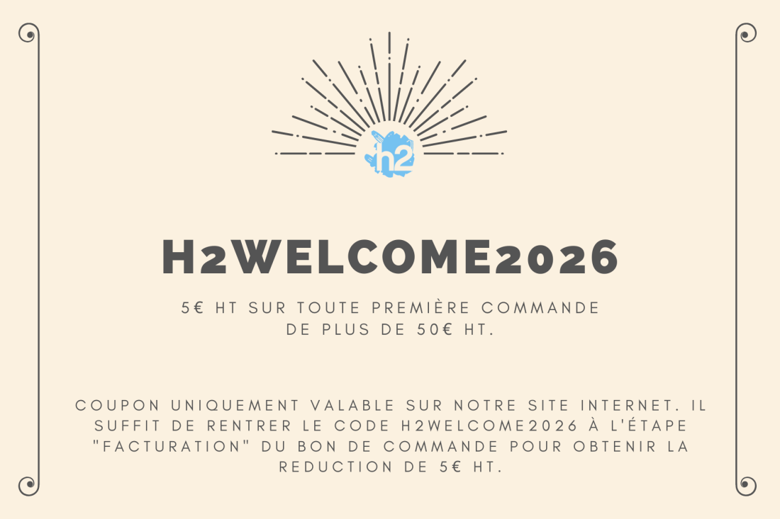 Code promo valable une seule fois après inscription sur notre site internet et à durée limitée (en fonction de nos capacités d'impression) : si il ne fonctionne plus c'est que sa durée d'utilisation est dépassée. Il suffit d'inscrire le code H2WELCOME2026 dans le champ dédié "Code Promo" à l'étape "Facturation" de votre panier pour pouvoir en profiter. Ce coupon de réduction peut être utilisé sur l'ensemble de notre site internet. Les frais de livraison éventuels ne rentrent pas en compte dans le calcul de ce coupon de réduction, il faut dépasser 50 euros ht d'achat d'impression pour pouvoir en bénéficier.